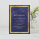 A trendy, modern 30th birthday party invitation card for men, guys, male. A dark blue, navy blue background. The blue colour is uneven. With a faux gold frame and golden confetti sprinkle, golden coloured letters. Templates for your party information.