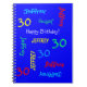 What a wonderful, personalised spiral notebook Guest Book for a 30th birthday party or any other occasion. On the cover, Name and Age repeats in different fonts and primary colours on a bright blue background. Easy to personalise - just CHANGE NAME, AGE, and OCCASION in ONE PLACE. Supports name up to 9 characters. A colourful and fun Birthday Party Guest Book - easy to change for ANY NAME, ANY AGE. All Rights Reserved © 2014 Alan & Marcia Socolik.