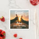 A napkin for a 30th birthday party for a guy. Photo of two hands holding bottles of beer against the evening sunset. Keep the photo or add yours. With the text: Cheers to, templates for a name age 30 and a date. Date of birth or the date of the party.