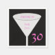Say Cheers to 30th birthday party cocktail paper napkins. This great design is especially for women and features pink accents with a glass being the focal point with the words "Cheers to" inside and the name of the birthday gal on the glass. The number 30 appears on the side on a black background. These personalised disposable napkins are a great addition to a 30th birthday party for women. Copyright henishouseofpaper