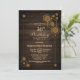 Rustic woodgrain 30th birthday party invitation with a unique geometric gold frame.