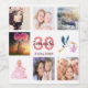 A bottle label for a 30th birthday party, celebrating her life with a collage of 8 of your photos. Templates for a name, age 30 and a date. Date of birth or the date of the party. Coral and burgundy coloured letters. White background.