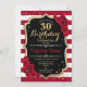 30th Birthday - Red Gold Black White Stripes Roses Invitation