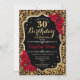 30th Birthday - Red Roses Leopard Print Invitation