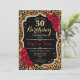 Elegant red black white design with faux glitter gold. Features leopard cheetah animal print, script font and roses. Perfect for an elegant birthday party. Can be personalized into any year! Message me if you need further customization.