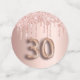 Girly and feminine confetti for a 30th birthday party table setting. A rose gold faux metallic, foil looking background decorated with faux rose gold glitter drips. Personalise and add her name/text. Dark rose gold coloured letters. Some confetti chips with name and date, others with number 30 written with a balloon style fonts, and with the text Happy Birthday.