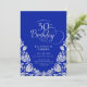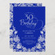 Royal blue silver elegant 30th birthday party invitation. Classy design featuring roses, faux silver foil and typography script font. Trendy invite card perfect for a stylish female bday celebration. Personalise with your own details. Can be customised to any age. Printed Zazzle invitations or instant download digital printable template.