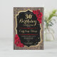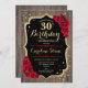 Rustic 30th Birthday Invitation. Elegant design with dark brown wood pattern, red roses and faux glitter gold. Features script font and confetti. Perfect for a stylish birthday party. Customise with your own details.
