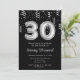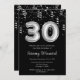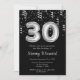 This elegant and glamourous birthday invitation features the number 30 in silver with silver confetti. The text combines handwritten script and modern sans serif fonts for a classy and sophisticated look.
