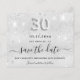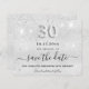 30th birthday silver glitter save the date card