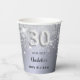 For a glamourous and girly for a 30th birthday party. A faux silver metallic looking background. On the front and the back: Personalise and add a name and a date. Decorated with faux glitter dust.