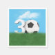 A black and white soccer ball in green grass, blue sky, and white fluffy clouds for a 30th birthday party.