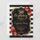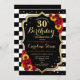 Rustic 30th Birthday Invitation. Floral design with black and white stripes, sunflowers, red roses and faux glitter gold. Features stylish script font and confetti. Perfect for an elegant birthday party. Customise with your own details.