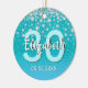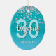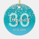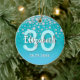 An elegant, glamourous and girly 30th birthday ornament. Teal, blue green coloured faux glitter with faux diamond sprinkle and a golden frame. Templates for a name, age 30 and a date. Date of birth or the date of the party/anniversary. White and teal coloured letters. The name is written with a hand-lettered style script. Can be used as a favour, birthday gift or as a keepsake from your big day.