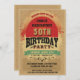 Funky 30th birthday party invitations template. Mens' or womens' colourful unisex vintage retro style personalised birthday party invites. Woman's or man's affordable personalised custom thirtieth / thirty years / 30 year old birthday party celebration invitations with a beautiful, elegant, groovy, retro themed design with a grungy star burst vector illustration in red with ornate brown calligraphic / calligraphy swirls and flourishes ornaments and trendy retro typography / text design and green banners on a tan / beige and yellow grunge background. A cool, modern, fashionable, design for men or women with a vintage style theme. These stylish, classy, pretty, grunge, shabby chic invites are printed / decorated on both sides. PLEASE NOTE:- All invitations on Zazzle have flat printed images. If you need any assistance customising your product, please contact me through my store and I will be happy to help.