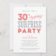 30th surprise birthday invitations with a fun pink, grey, and white design. Personalise the wording for your 30th surprise party needs.