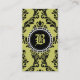 311 Moss Green Black Damask Monogram Flower Business Card