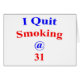 Know someone who quit smoking at age 31? Or is 31 years old and is going to quit smoking? Maybe it's their 31st birthday and they've decided it's the right day to stop smoking. Makes a perfect 31st birthday gift or just a way to say you're proud they've quit smoking.