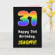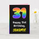 31st Birthday: Colourful Rainbow # 31, Custom Name Card