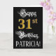 The front of this elegant and luxurious birthday greeting card design features the message “Happy 31st Birthday,”, and a custom recipient name. Part of the message is in a lavish script-style text. The large number “31st” features a faux/imitation gold-inspired look pattern. The background is coloured black. The inside has an editable birthday greeting message, or could perhaps be cleared and left blank if a message is to be written by hand instead. A fancy, customised birthday greeting card like this might be a respectable way to send a birthday greeting message to somebody who is celebrating their thirty-first birthday. [~Z0000559]