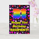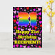 The front of this fun and colorful birthday-themed greeting card design features a large number “31” having a rainbow spectrum gradient inspired pattern. It also features the message “Happy 31st Birthday,”, and a personalized name. The background of the front features a pattern of red, pink, and purple heart shapes of various sizes. The inside has a custom birthday greeting message, or could perhaps be cleared and left blank if a message is to be written by hand instead. A joyful, customizable birthday greeting card like this might be a fun way to deliver a birthday greeting message to somebody who is celebrating their thirty-first birthday. [~Z0000551]