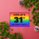 The front of this eye-catching thirty-first birthday party foil invitation card design features an editable name, a large number “31st”, the message “BIRTHDAY PARTY!”, and a border. The background of the front has an upbeat, multicolored, rainbow spectrum inspired gradient pattern. The back features personalised details about the event, such as the date, time, venue, and any other information that may be relevant. Personalised invitations like these might be a fun way to invite guests/attendees to a birthday gathering being held to celebrate somebody’s 31st birthday. [~Z0000599]