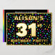 The front of this fun thirty-first birthday party foil invitation card design features a personalised name, a large number “31st”, the message “BIRTHDAY PARTY!”, and a border. The background of the front has an eye-catching, colourful star shapes pattern. The back features personalised details about the event, such as the date, time, venue/place, and any other relevant information. Customisable invitations like these might be a fun way to invite guests to a birthday gathering being held in celebration of somebody’s 31st birthday. [~Z0000600]