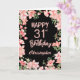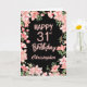 31st Birthday Pink Peach Watercolor Floral Black Birthday Card. For further customisation, please click the "Customise it" button and use our design tool to modify this template.