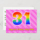 31st Birthday: Pink Stripes & Hearts, Rainbow 31 Postcard