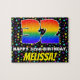 This exciting and eye-catching birthday-themed jigsaw puzzle design features a large number “32” having a multicolored rainbow spectrum inspired gradient pattern. It also features the message “HAPPY 32nd BIRTHDAY,”, and a personalised recipient name. The background features a joyful, colourful star field pattern. A colourful, editable birthday puzzle like this might be used to celebrate somebody’s thirty-second birthday. [~Z0000607]