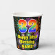 32nd Birthday: Fun Fireworks Pattern + Rainbow 32 Paper Cups