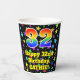 This joyful and fun birthday paper cup design features a large number “32” with a rainbow spectrum gradient inspired pattern, along with the message “Happy 32nd Birthday,”, and a customisable name. The background features a vibrant and colourful pattern having many star shapes with different sizes and colours. Vibrant, colourful paper cups like this might be fun to have at a birthday party/celebration being held in celebration of somebody’s thirty second birthday. [~Z0000540]