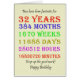 32nd birthday card counting down the years, days, months, hours, and minutes. A card to give pause for thought! Leap years have been taken into account!