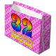 32nd Birthday: Pink Stripes & Hearts, Rainbow # 32 Large Gift Bag