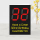 The front of this silly and geeky birthday themed greeting card design features a large number "32" having a red seven segment digital display inspired appearance, along with the message "Have a Great 32nd Birthday," and an editable name, on a black coloured background. The inside features a personalised birthday greeting message, or could perhaps be cleared and left blank if a message is to be written by hand instead. A customisable birthday card like this might be a fun way to send a message in celebration of somebody’s thirty second birthday. [~Z0000386]