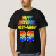 The front of this bold, vibrant, and colourful birthday-themed shirt design features a large number "33" and the message "HAPPY BIRTHDAY,", both coloured with a rainbow spectrum gradient inspired pattern, along with a bold yellow custom name. Bold and colourful birthday-themed shirts like this might be fun for the guests at somebody’s thirty third birthday celebration to wear. [~Z0000473]