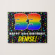 This eye-catching and exciting birthday jigsaw puzzle design features a large number “33” having a multicolored rainbow spectrum inspired gradient pattern. It also features the message “HAPPY 33rd BIRTHDAY,”, and a customisable recipient name. The background has a fun, colourful star shapes pattern. A cheerful, personalised birthday puzzle like this might be a fun way to send a birthday greeting message to somebody who is celebrating their thirty-third birthday. [~Z0000607]