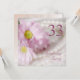 A beautiful delicate image of daisies in soft pink tones. In the background is a string of pearls. The whole effect is soft and old fashioned. A delightful 33rd birthday party invitation. Change the back to your own party details
