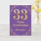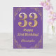33rd Birthday Purple and Gold Glitter Frame Card