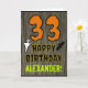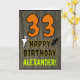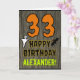 The front of this spooky and scary Hallowe'en birthday themed greeting card design features a large number "33". It also features the message "HAPPY BIRTHDAY,", and a personalised name. There are also depictions of a ghost and a bat on the front. The inside features a personalised birthday greeting message, or could perhaps be cleared and left blank if a message is to be written by hand instead. A personalised birthday card like this might be a fun way to send birthday wishes to somebody who is celebrating their thirty third birthday and who was also born on Halloween (October 31st). [~Z0000410]