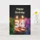 A birthday cake with candles. The candles are made up of the number 34, for a 34th birthday. A birthday card suitable for everybody.