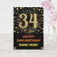 34th Birthday Fireworks Rainbow Gold Fun Card