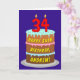 The front of this joyful and fun birthday themed greeting card design features a depiction of a three-tier birthday cake having number-shaped candles on top showing the age “34“, along with the message “HAPPY 34TH BIRTHDAY,”, and an editable recipient name. The inside has a customised birthday greeting message, or could perhaps be cleared and left blank if a message is to be written by hand instead. An upbeat, editable birthday greeting card like this might be a fun way to send birthday greetings to somebody who is celebrating their thirty-fourth birthday. [~Z0000620]