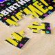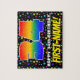 This vibrant and upbeat birthday jigsaw puzzle design features a large number “34” with a multicolored rainbow spectrum inspired gradient pattern, along with the message “HAPPY 34th BIRTHDAY,”, and a personalised recipient name. The background has a fun, colourful star shapes pattern. A colourful, customisable birthday puzzle like this might be used to celebrate somebody’s thirty-fourth birthday. [~Z0000607]