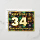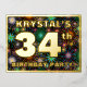 The front of this eye-catching and exciting thirty-fourth birthday party/celebration foil invitation postcard design features a personalised name, a large number “34th”, the message “BIRTHDAY PARTY!”, and a border. The background of the front has a fun, colourful bursting celebratory fireworks-inspired pattern. The back features personalised details about the event, such as the date, time, venue/place, and any other important information. Editable invitations like these might be a fun way to let attendees/guests know about a birthday party/gathering being held in celebration of somebody’s 34th birthday. [~Z0000609]