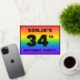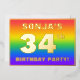 The front of this fun and vibrant thirty-fourth birthday party/celebration foil invitation card design features a personalized name, a large number “34th”, the message “BIRTHDAY PARTY!”, and a border. The background of the front has an exciting, colorful, rainbow spectrum inspired gradient pattern. The back features personalized details about the event, such as the date, time, venue/location, and any other useful information. Customized invitations like these might be a fun way to invite guests to a birthday party/gathering being held to honor somebody’s 34th birthday. [~Z0000599]