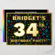 The front of this joyful thirty-fourth birthday party/celebration foil invitation card design features a personalised name, a large number “34th”, the message “BIRTHDAY PARTY!”, and a border. The background of the front features an exciting, colourful music symbols and notes pattern. The back features personalised details about the event, such as the date, time, venue, and any other important information. Editable invitations like these might be a fun way to invite guests/attendees to a birthday gathering/party being held to celebrate somebody’s 34th birthday. These might be more meaningful if that person is a musician, a composer, a singer, a songwriter, or appreciates music. [~Z0000601]