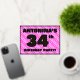 The front of this fun thirty-fourth birthday celebration foil invitation card design features an editable name, a large number “34th”, the message “BIRTHDAY PARTY!”, and a border. The background of the front has a loving dark pink and light pink striped pattern containing heart shapes. The back features personalised details about the event, such as the date, time, venue/location, and any other useful information. Editable invitations like these might be a fun way to invite attendees/guests to a birthday gathering/party being held to honour somebody’s 34th birthday. [~Z0000603]