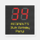 This fun and nerdy birthday paper napkin design features a large number "34" with a red seven segment digital display inspired appearance, along with a customisable name and the message "34th Birthday Party!" in nerdy yellow text, on a black coloured background. Birthday themed paper napkins like this might be used when celebrating somebody’s thirty fourth birthday. [~Z0000388]