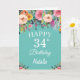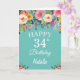 34th Birthday Watercolor Floral Flowers Teal Card with personalised name and age. For further customisation, please click the "Customise it" button and use our design tool to modify this template.